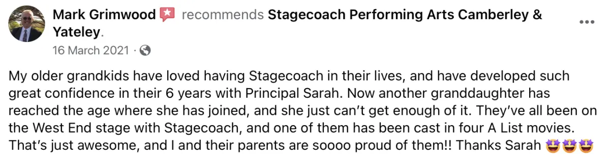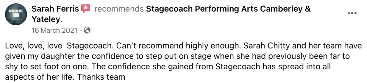 ✔️ Your Child would like to improve their Singing, Acting and Dancing, while also building confidence and social skills.